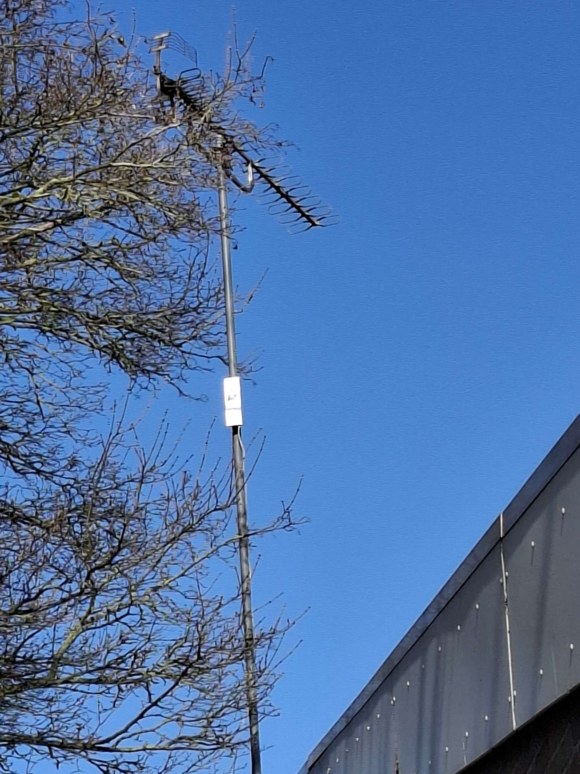 Wij hebben op meerde punten deze witte kastjes geïnstalleerd. Deze apparaten zorgen voor een stabiele draadloze verbinding tussen de verschillende punten. Op deze manier kunnen gegevens snel en betrouwbaar van de ene locatie naar de andere worden verzonden, zonder dat er fysieke bekabeling nodig is.